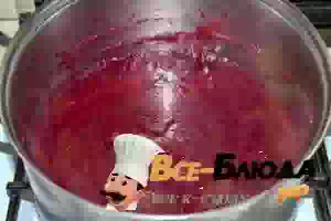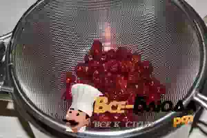 2. Процедите отвар и протрите ягоды, используя сито. Вишневые косточки выбросьте.