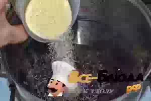 4. Поставьте кастрюльку на огонь. В кипящий сироп всыпьте манную крупу, при этом энергично ее размешивая.