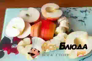 1. Подготовить фрукты для десерта. Яблоко, грушу и банан помоем проточной водой. Фрукты подбираем по возможности одинаковой мягкости. Отмерим нужное количество рома и корицы. Коричневый сахар будем добавлять по вкусу. Фрукты почистим. У груши и яблока удалим семенную коробочку. Всё порежем на кусочки толщиной чуть больше 1 см.