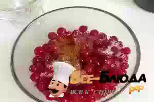 1. Красную смородину оборвать с веточек, промыть под проточной водой и откинуть на дуршлаг, чтобы стекла вся вода. Переложить ягоды на бумажное полотенце, обсушить и пересыпать в миску подходящего размера. Посыпать смесью молотой лимонной цедры, корицы и сахарного песка.