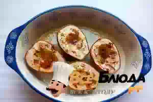 5. В завершение посыпаем корицей. Кулинарной кисточкой смазываем дно жаропрочной формы, перекладываем в неё груши срезом вверх и отправляем в разогретую до 180С духовку на 30-40 минут. Запеченную в духовку грушу подаем горячей или охлажденной.