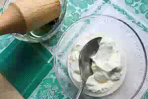 4. Сцеживаем в творог сок трав, тщательно все смешиваем; высыпав оставшуюся часть сахара, мешаем до однородной массы.