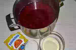 3. Перелейте малиновый отвар обратно в кастрюльку. Добавьте в отвар ванилин и сахар.