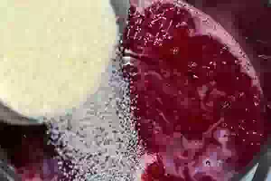 1. Для приготовления мусса или взбитой манной каши возьмите замороженную малину. Залейте ягоды водой и поставьте на огонь кастрюльку.