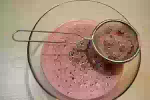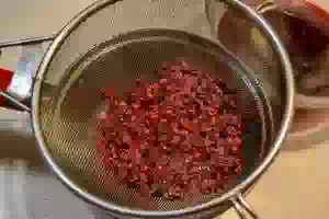 3. Затем процедите отвар через металлическое сито и протрите ягоды. Мезгу выбросьте, она для желе не понадобится.