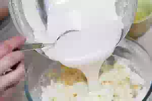 3. Смешать маскарпоне с охлажденным желтковым кремом. Можно слегка взбить миксером (на низких скоростях).