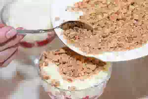 6. Посыпать сверху печеньем. Убрать в холодильник минут на 15-20. Десерт готов.