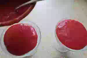 7. Распределить клубничное желе по креманкам с сырным кремом и вернуть в холодильник.