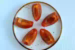 3. На сервировочную тарелку выкладываем нарезанные дольки хурмы.