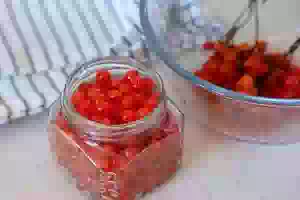 2. Небольшие банки (у меня по 250 мл), промыть и обсушить. Заполнить банки ягодами.