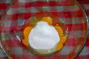 1. Моем клубнику, раскладываем на бумажное полотенце, чтобы впитался излишек влаги. Яйца и полстакана сахар перетираем.