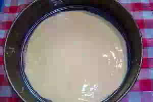 3. Маслом комнатной температуры смазываем разъёмную форму. Разравниваем тесто по дну формы и ставим на 30 минут в духовку, прогретую до 180С.
