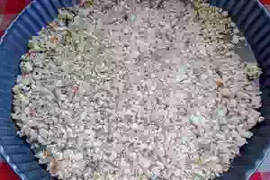 6. Остальной желатин также заранее замачиваем. Отбираем самую красивую клубнику. Примерно 10 ягод разминаем и, добавив полстакана воды, доводим до кипения. Такой отвар придаст цвет верхнему желейному слою. Процеживаем и добавляем в клубничный отвар 3 ложки, можно больше, сахара. Соединяем с желатином, нагреваем, пока желатин полностью не разойдётся. Когда застынет первый слой десерта, поверх плотно укладываем свежую клубнику и заливаем клубничным отваром на желатине. Снова возвращаем блюдо в холодильник. Через пару часов десерт клубничный десерт с миндальной крошкой можно подавать к столу. Можно отложить немного миндаля в сахаре и украсить им готовый клубничный десерт перед самой подачей.