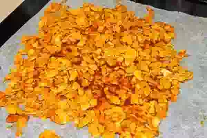 8. Быстро разравниваем карамельную массу на бумаге для выпечки и даём остыть. При подаче разбиваем карамель на небольшие кусочки и украшаем ею мусс. Стаканчик десертного вина здесь будет очень кстати.