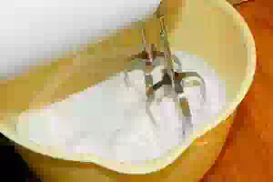 5. Ввести оставшиеся белки и осторожно размешать, не выбивая из них воздуха. В последнюю очередь вмешать взбитые сливки.