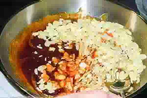 2. Сцедим образовавшуюся жидкость. Её можно употребить как компот. Миксером превращаем ягоды в однородное пюре.