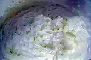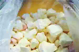 2. Безе надо измельчить, но не в пудру, а так что бы ещё кусочки были. Я их измельчала в пакетике, скалкой слегка постукала.