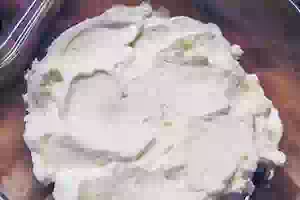 3. Сливки взбиваем, так что бы стояли пики. Добавила ещё пакетик ванильного сахара, можно и без него.
