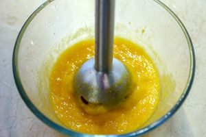 2. Пробить кусочки манго погружным блендером, затем протереть через металлическое сито. Так вы точно избавитесь от волокон, которые попадаются в мякоти даже самого спелого манго.