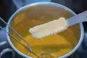 7. Поставить ковш на маленький огонь и варить при постоянном помешивании примерно 15 минут, пока смесь не загустеет и начнет пузыриться.