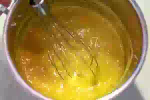 8. После этого снять ковш с готовым курдом из манго с огня и добавить сливочное масло. Перемешать венчиком, разложить по баночкам и дать остыть при комнатной температуре. Если готовите манговый крем впрок, то храните в холодильнике примерно 1 неделю.