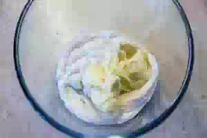 9. Небольшими порциями добавлять к маскарпоне сливочное масло, взбивая венчиком.