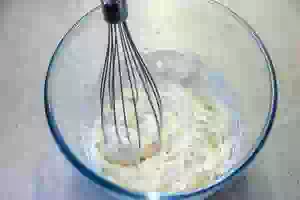 2. Следом добавить кукурузный крахмал (или муку), хорошо размешать венчиком, чтобы не было комочков.