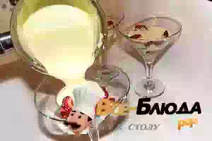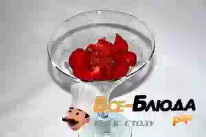 1. Чтоб приготовить десертный крем сабайон с ягодами клубники, основные ингредиенты слегка охлаждают. То есть, клубника, яйца и вино предварительно помещаются в холодильник. Охлажденные ягоды моют, убирают зеленые хвостики, режут дольками и укладывают на дно бокала.