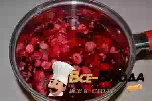 2. С момента закипания проварите ягоды примерно 20-25 минут, чтобы получить насыщенный ягодный отвар. Затем процедите отвар через металлическое сито и протрите ягоды. Ягодный жмых выбросьте.