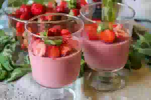 Желе из ряженки с клубникой Ингредиенты: сахар (или мёд) - по вкусу ряженка - 300 мл клубника - 300г желатин - 7-10г
