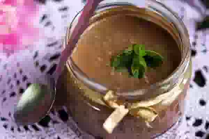 Шоколадный мусс с бананом Ингредиенты: сметана (жирная) - 3 ст.л. какао-порошок - 2 ст. л. ванилин - 1 щепотка банан - 1 шт.