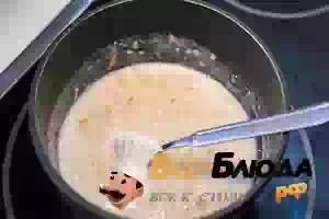 3. Влейте немного молока, размешайте и продолжайте варить на маленьком огне еще несколько минут.