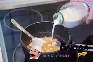 2. Влейте немного молока, размешайте и продолжайте варить на очень маленьком огне еще несколько минут.