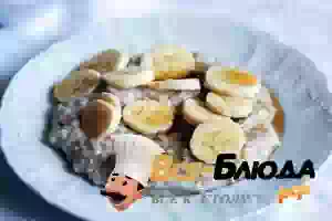 3. Готовую кашу переложите на тарелку, добавьте по вкусу мёд и ломтики банан.
