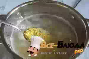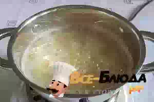 2. Рис хорошо промойте, замочите на один час в прохладной воде. Пшено также промойте в нескольких водах. Пшено положите в глубокую миску, залейте крутым кипятком и оставьте на двадцать минут. После такой обработки крупа не будет горчить и сварится намного быстрее. Затем воду слейте.