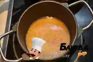 3. В небольшой кастрюле вскипятить воду, посолить, добавить сливочное или топлёное масло. Затем всыпать, помешивая, желудёвую крупу. Варить кашу на слабом огне, помешивая, пока она не станет густой.