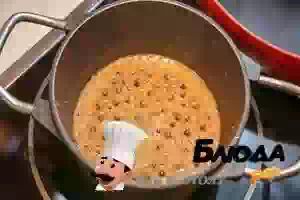 4. Затем кастрюлю накрыть крышкой и доваривать на самом маленьком огне или в духовке. Подавать кашу из желудей горячей, полив сверху растопленным сливочным или топлёным маслом.
