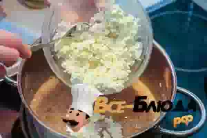 5. Снова хорошо размешиваем, чтобы творог равномерно распределился в каше. Закрыть кастрюлю с овсянкой крышкой, снять с плиты и оставить на 5 минут. Овсяная каша с творогом готова.