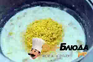 3. Тыкву с молоком варим под крышкой около 20 минут, а в это время промываем под проточной водой пшено.