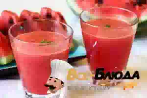 5. Готовый смузи из арбуза разлить по бокалам и подавать к столу сразу же после приготовления.