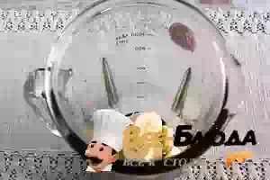 2. Очищаем банан от кожуры, нарезаем его небольшими сегментами и выкладываем в чашу блендера.