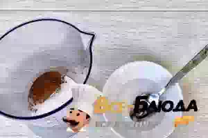 1. В высокую чашу блендера насыпать какао-порошок и сахар (3 ст.л.), влить 3-4 ч.л. горячей воды. Вода нужна, чтобы сахар полностью растворился и не хрустел потом на зубах в кефире. Какао должно раствориться, чтобы не плавать в холодном кефире шариками.