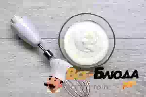 4. Сливки и ложку сахара взбить венчиком, чтобы получилась воздушная масса.