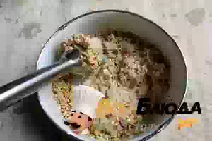 3. Очистить яблоко от кожуры и нарезать мелкими кубиками. Добавить к измельченной гречке и хорошо перетереть блендером вместе.
