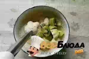 4. Теперь добавить киви, банан и мед, измельчить все вместе.