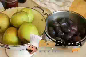 2. Сочные спелые сливы разделить пополам, удалить косточку. Яблоки разрезать на четвертинки, удалив семенную коробочку.