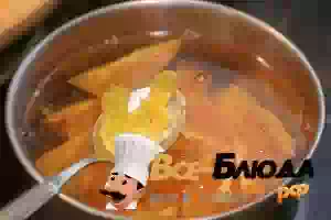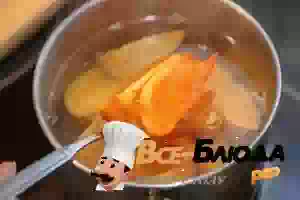 3. Воду для компота довести до кипения, добавить сахар и проварить на небольшом огне примерно 5 минут.