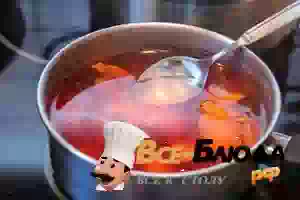 6. Вернуть кастрюлю на огонь. Как только вода повторно закипит, снизить нагрев до минимума и варить под крышкой примерно 15 минут. Снять с плиты и дать компоту настояться. Будет заметно, как он из практически бесцветного станет розовым. Перелить компот из хурмы в кувшин и подавать на стол.