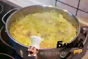 2. Вскипятить воду и добавить сахар. Сначала можно ограничиться 5-6 ст.л. сахара, чтобы компот получился приятно кислым. После решите, стоит ли еще добавлять сахара. После того как вода с сахаром закипит, уменьшить нагрев и проварить 5 минут.