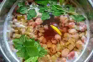 5. После того, как напиток остынет, его следует процедить. Подавать освежающий компот из стеблей ревеня и клубники с веточкой мяты или с кубиками льда.